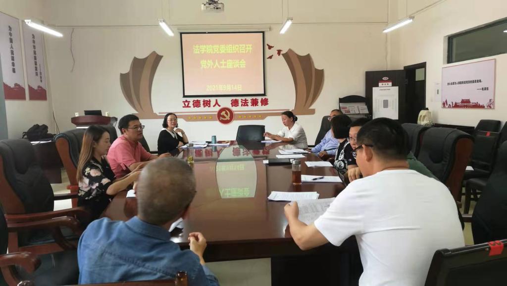 9月14日下午,法学院党委在文德楼A8-310会议室召开党外人士座谈会并进行谈心谈话。学院党委书记詹伟、副院长(正处级)(主持工作)陈玉梅、党委副书记彭华及各党外人士参加会议。学院党委书记詹伟主持会议。