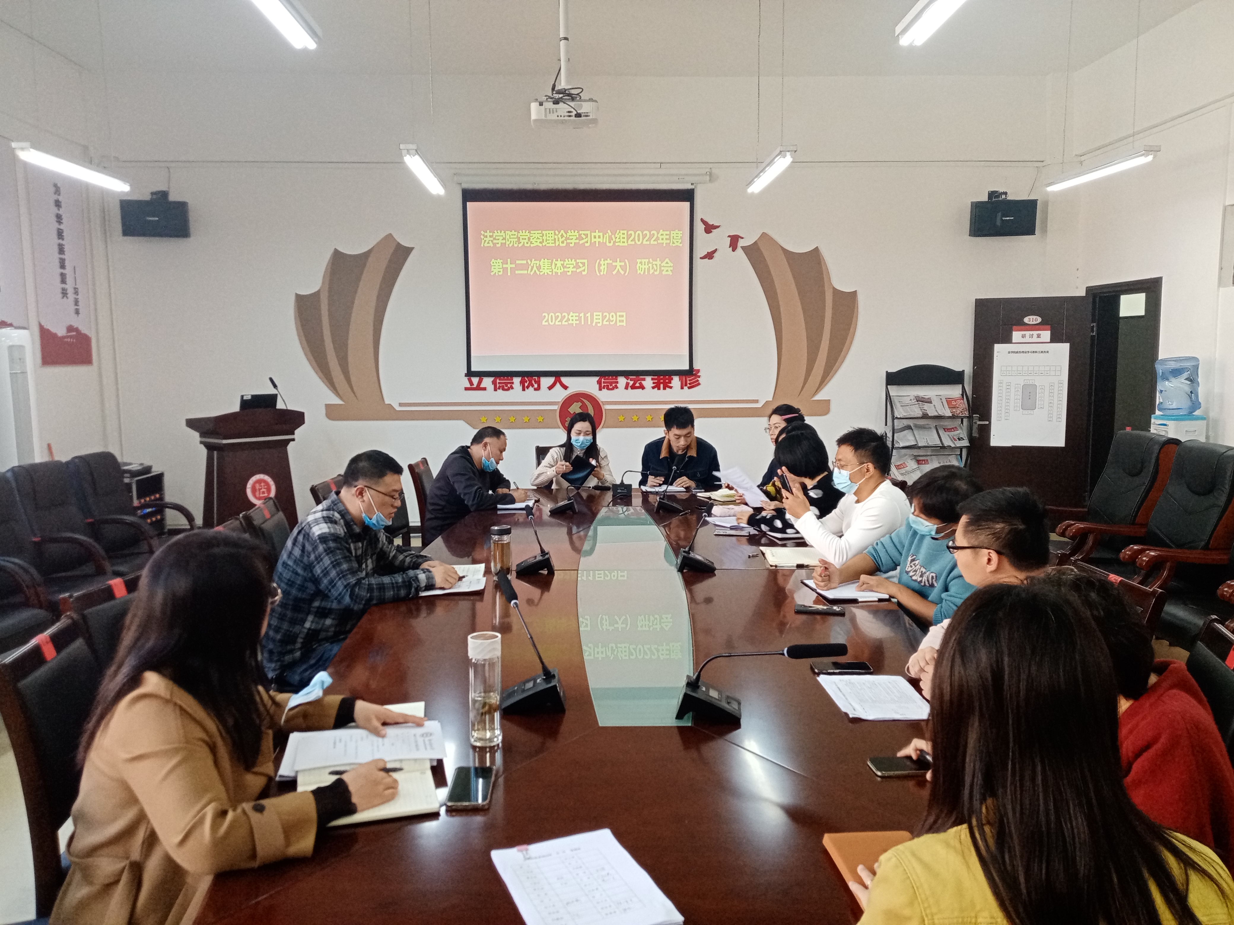 围绕学习内容,结合工作实际,法学院党委委员、副院长曹务坤同志在会上作重点发言,办公室副主任张姝同志在会上做了交流发言。