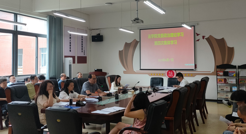 (法学院 潘吉脉 报道摄影 )6月17日下午,法学院党委组织召开2025年度第四次教职工政治理论集体学习会,院领导班子及全院教职工出席会议。党委书记邵新顺主持会议。