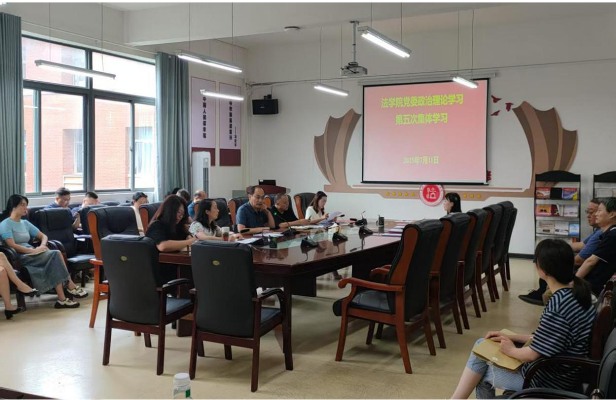 (法学院 潘吉脉 报道|摄影 )7月11日下午,法学院党委2025年度第五次教职工政治理论集体学习(扩大)研讨会在西区文德楼310会议室召开。院党委书记邵新顺主持会议并讲话。院领导曹务坤、代莉莎、彭华、宋昭澜出席会议,全体教职工参加。