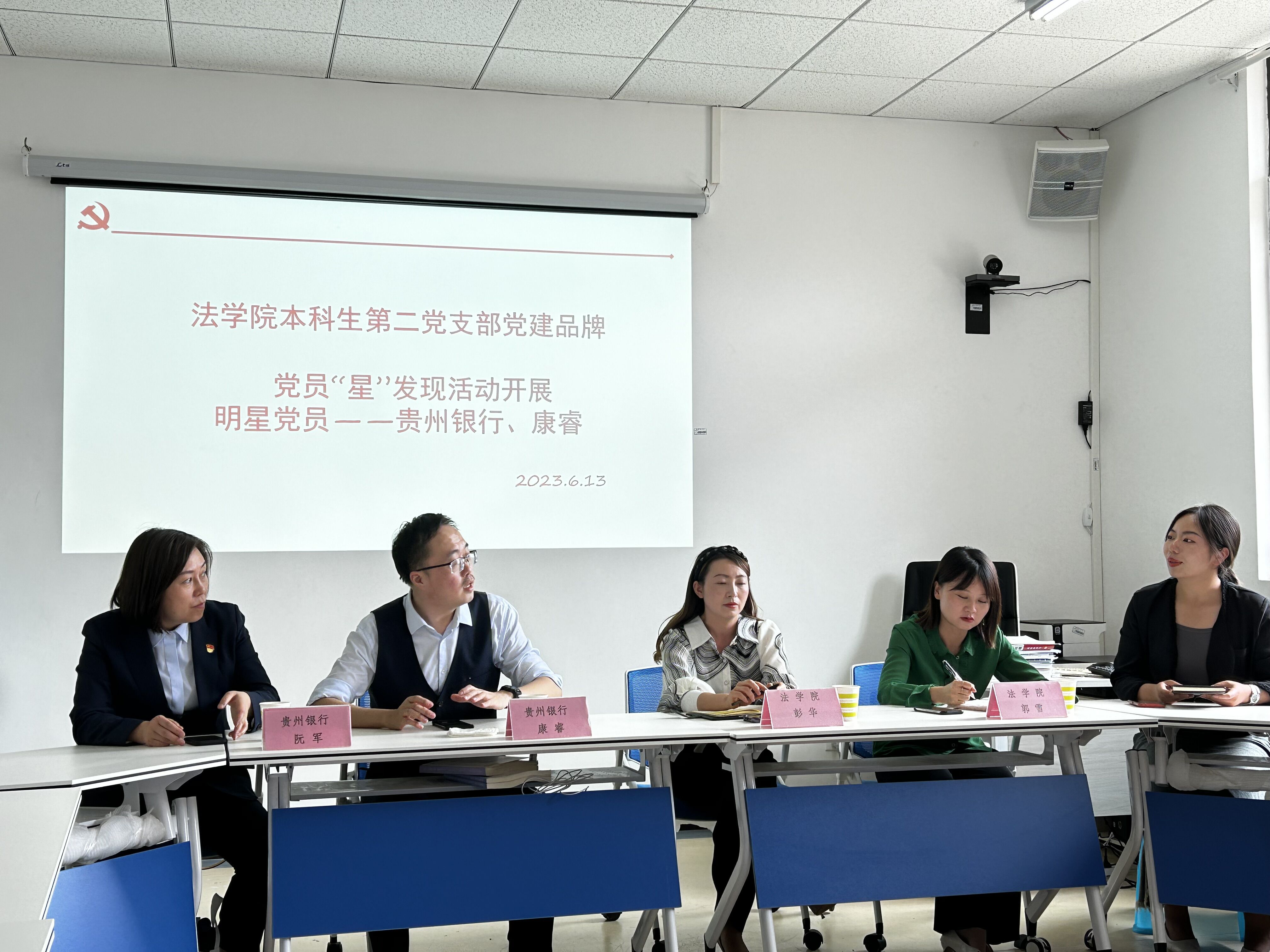 为落实学习贯彻华体会官方网页版_华体会(中国)新时代中国特色社会主义思想主题教育相关要求,切实提升在校大学生金融素养,倡导学生树立正确的价值观和消费观,2023年6月13日下午,法学院本科生第二党支部联合贵州银行总行机关第九党支部共同开展了“金融普法、护航青春”主题党日活动。