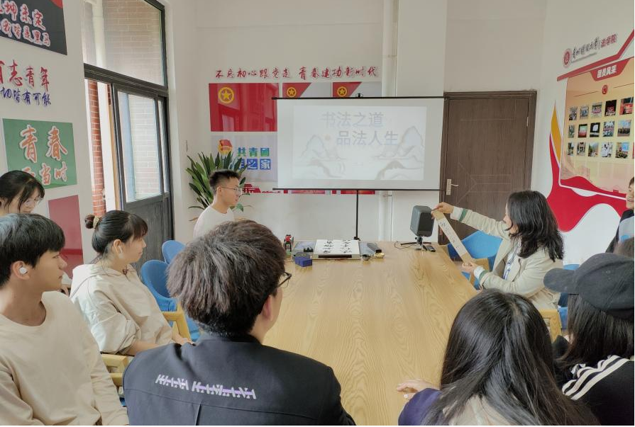 活动开始,代莉莎询问了同学们对书法的了解情况,向同学们分享了书法的历史渊源、艺术特点,鼓励同学们练习书法,在书法欣赏或者写作中感悟人生。随后,代莉莎以书法为载体,深入浅出地讲解了法律的基本原则、法律与生活的紧密联系等内容。最后,代莉莎带领同学们一起鉴赏部分同学准备好的书法作品,鼓励大家将法治与廉洁等内容融入书法作品中,创作出具有法律内涵的书法作品。