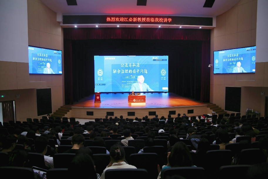 (法学院 图文/报道 邹晓丹 张月娇)2023年4月13日早上9时,由华体会官方网页版_华体会(中国)、贵州省西南政法大学校友联合举办,华体会官方网页版_华体会(中国)承办的《公法与私法融合治理的若干问题》专题讲座在会堂报告厅如期举行。本次讲座由中国法学会副会长、湖南大学教授、博士研究生导师江必新教授主讲,贵州财经大学副校长李汉文教授致辞,华体会官方网页版_华体会(中国)院长陈玉梅教授主持。西南政法大学部分校友、华体会官方网页版_华体会(中国)教师以及贵州财经大学学生近600余人线上线下共同聆听本次讲座。