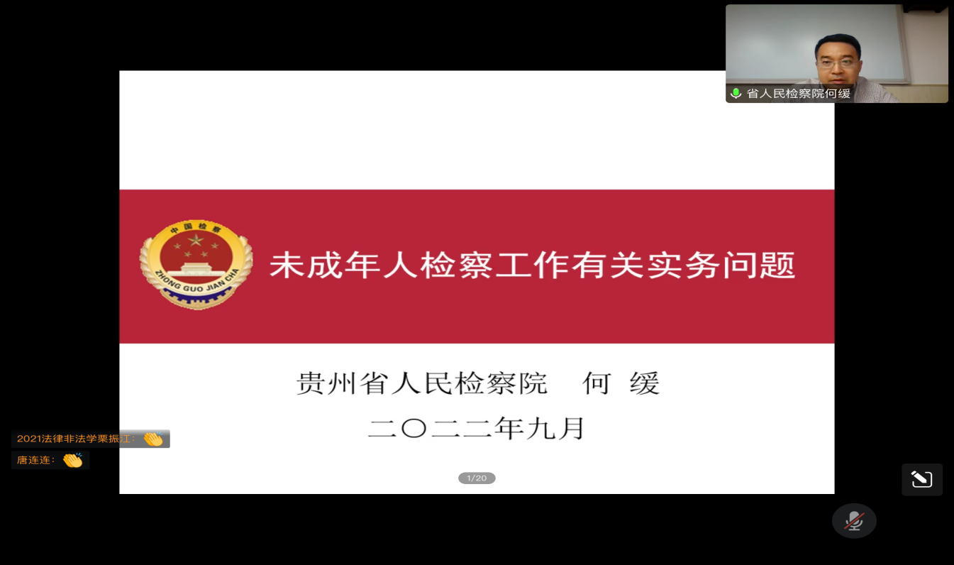 (法学院 图文/报道 钟佳昕)9月30日下午,由法学院承办的“未成年人检察工作有关实务问题”讲座通过腾讯会议举行。本次讲座由贵州省人民检察院第一检察部副主任、四级高级检察官何缓主讲。华体会官方网页版_华体会(中国)党委委员、副教授宋昭澜主持会议。法学院本科生、研究生及会计、工商管理等专业学生300余人次线上聆听。