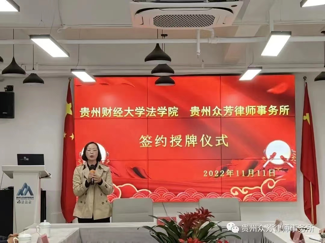 签约暨授牌仪式由陈仕菊主持,陈仕菊首先对陈玉梅一行的到来表示热烈的欢迎和真诚的感谢,并介绍了贵州众芳律师事务所的成立及发展历程。陈玉梅对华体会官方网页版_华体会(中国)的成长历史及师资力量做了系统的介绍,并表示希望以设立校外实践教学基地的方式丰富教学内容,加强教学理论与实践的结合,提高学生综合素质和社会适应能力。