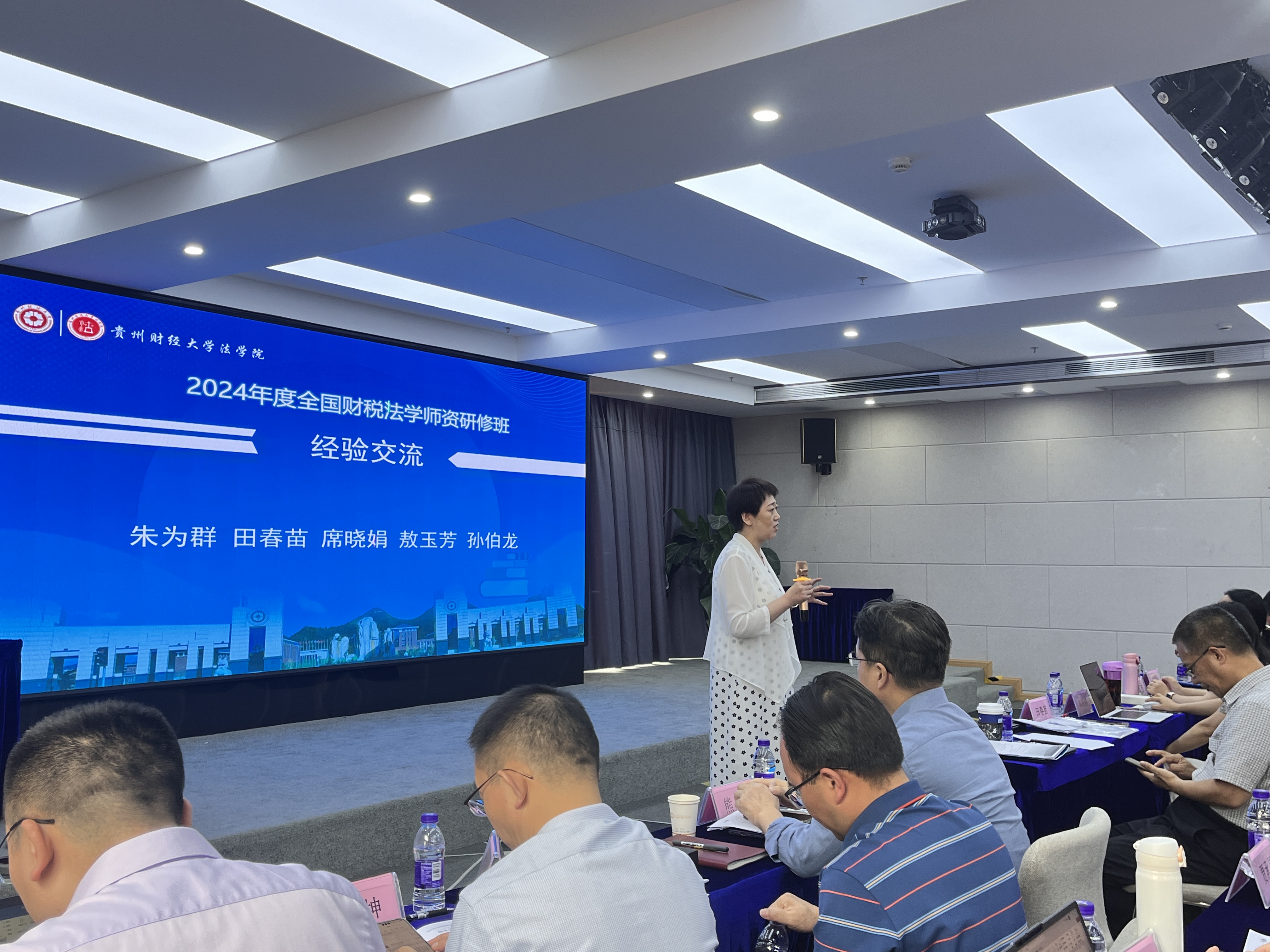 同时,研修班还安排了示范课教学、实务交流、教学创新等环节。深圳大学教授熊伟、华东政法大学教授朱为群、甘肃政法大学教授田春苗、西北政法大学副教授席晓娟、贵州财经大学副教授敖玉芳、杭州师范大学副教授孙伯龙等在示范课与教学经验交流评议与讨论中介绍和分享了各自的教学方法和教学经验。贵州慧纳税律师事务所创始合伙人颜薇、贵州普诚舜天税务师事务所有限公司所长伍敬华等围绕房地产税改革趋势展开实务交流。首都经贸大学副教授褚睿刚、华东政法大学副教授欧阳天健、西北政法大学讲师赵菁等围绕“从传统走向现代:资源税法教学的时代回应”主题进行了深入探讨。