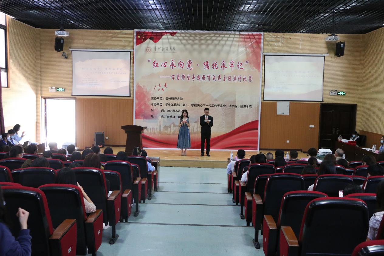 (法学院 程宇 报道|摄影 万沙 米钰)5月25日,华体会官方网页版_华体会(中国)在崇德楼报告厅举行“红心永向党 嘱托永牢记”百名师生专题教育成果演讲比赛。本次比赛由学生工作部(处)、学校关心下一代工作委员会、法学院、经济学院承办,贵州省演讲研究会副秘书长、中国春晖演讲团宣讲员熊书毅,贵州省职工读书演讲协会副秘书长、贵州省演讲研究会会员韩丹,学生工作部(处)副部(处)长陈晓勇,学生工作部(处)何祖星,关心下一代工作委员会史恩贤担任评委,法学院党委书记詹伟、各学院参赛选手以及全校师生共计200余人参加活动。